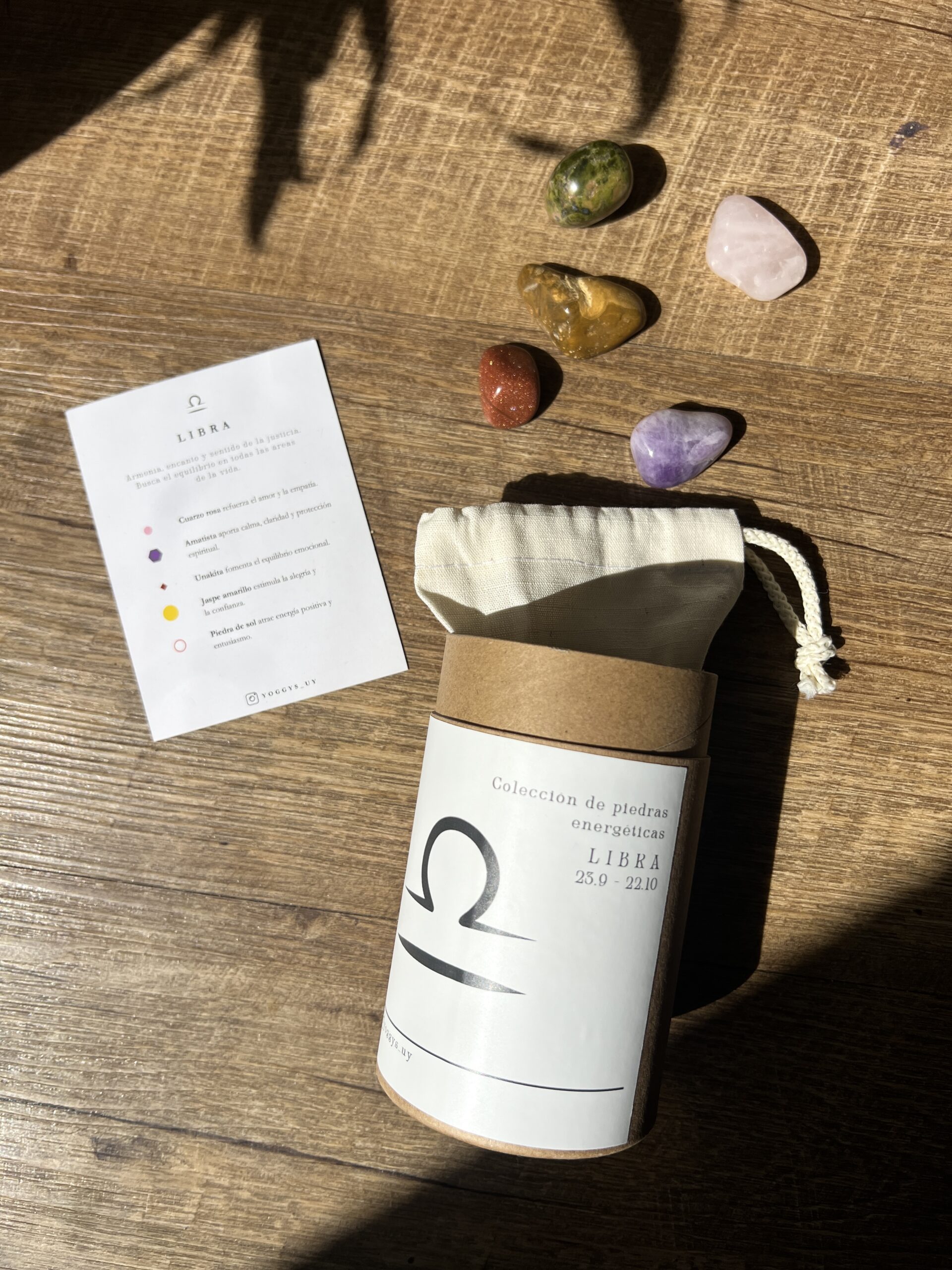 Este set de cristales está especialmente seleccionado para tu signo zodiacal. En la tarjeta encontrarás el significado de cada uno de los cinco cristales.