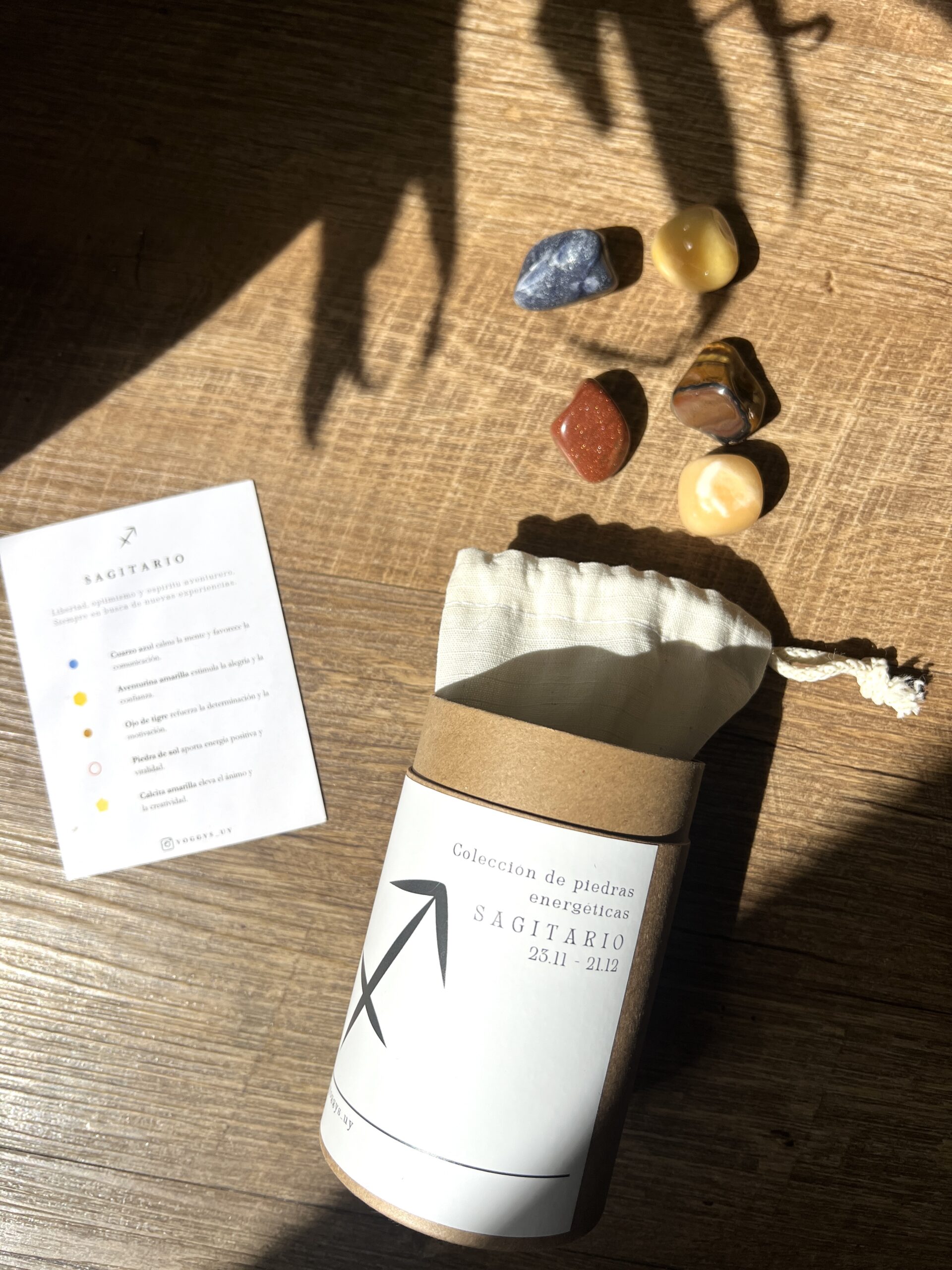 Este set de cristales está especialmente seleccionado para tu signo zodiacal. En la tarjeta encontrarás el significado de cada uno de los cinco cristales.